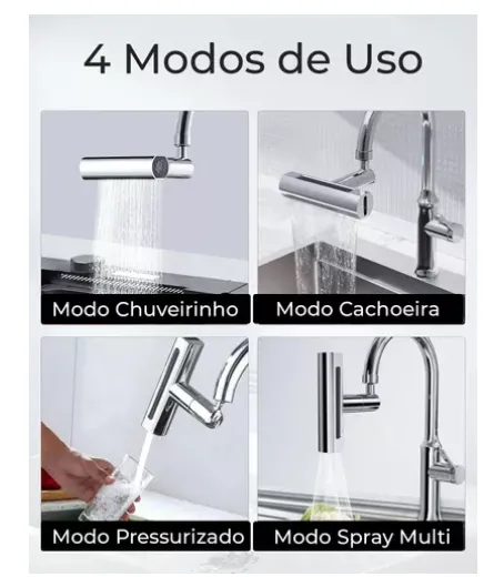 Adaptador Torneira Extensor Arejador Cascata 4 Modos 360o