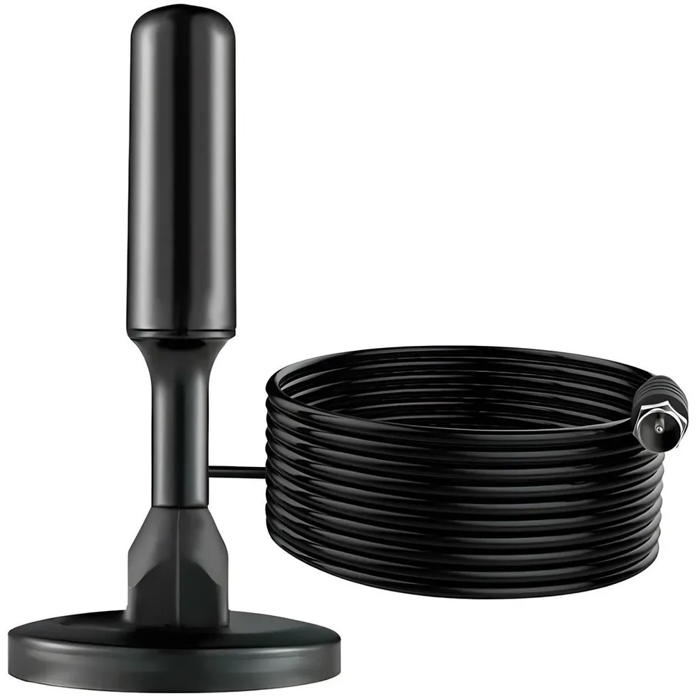Antena digital HDTV com base imantada e cabo de 3 metros, proporcionando excelente qualidade de imagem para sua TV. Produto pronto para usar, basta conectar a antena à TV ou ao receptor digital através do conector F. Devido às suas duas frequências de operação, é permitida a captação de sinais analógicos e também digitais (incluindo sinais FM).