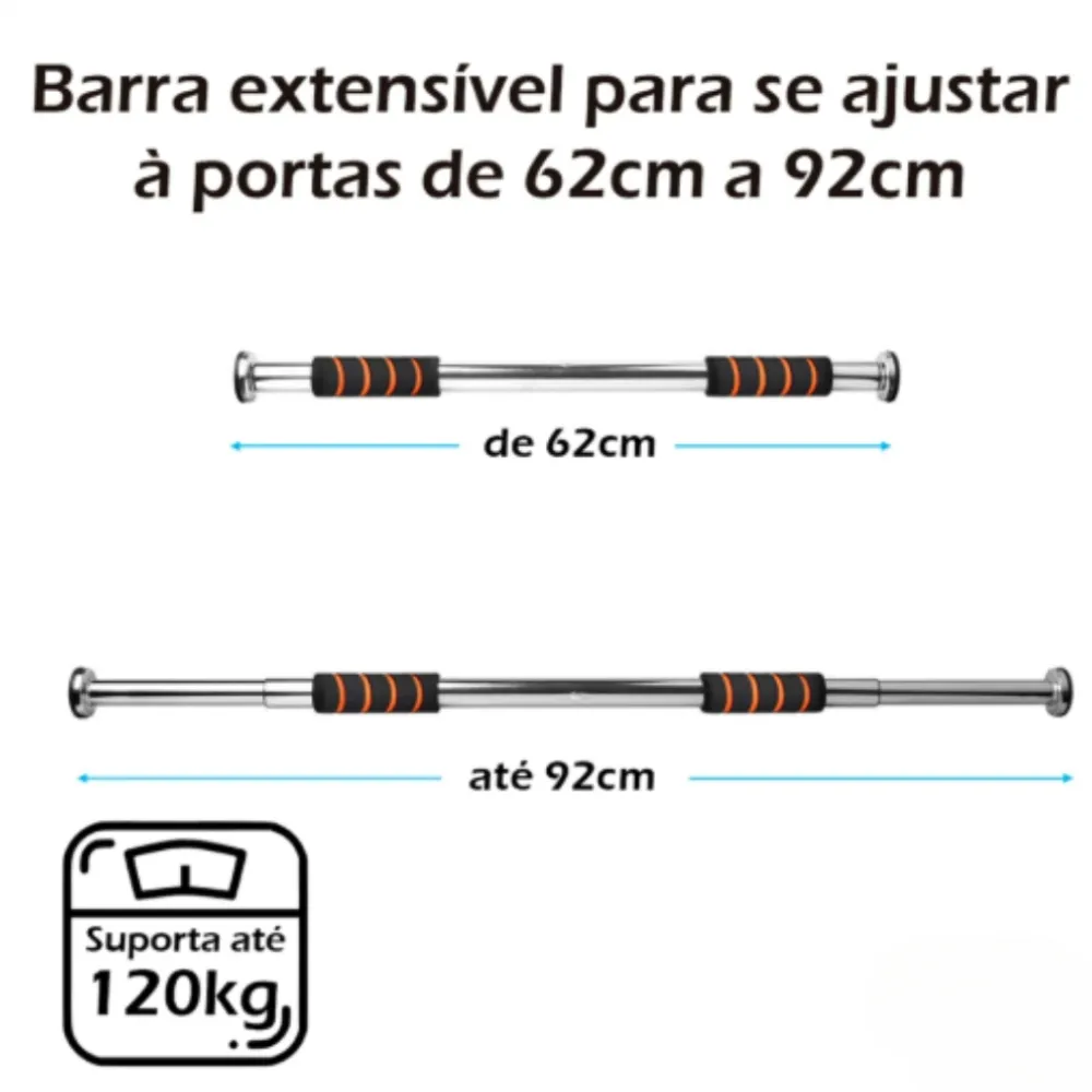 Transforme sua rotina de exercícios com a Barra de Porta Fixa Extensível. Se você está procurando uma maneira eficiente e empolgante de fortalecer seus músculos em casa, temos a solução perfeita para você. Com seu design em aço resistente e pegadores de neoprene que proporcionam uma aderência confortável, a Barra Fixa é ideal para o fortalecimento dos membros superiores e do núcleo. Além disso, com sua capacidade para suportar até 120 kg, você pode treinar com confiança, sabendo que está investindo em qualidade e durabilidade.