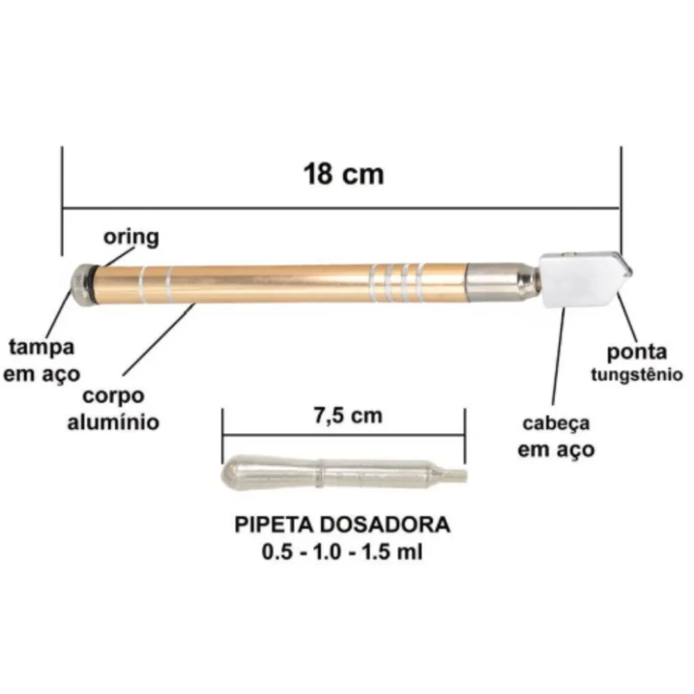 Cortador De Vidro E Espelho Profissional | Corta Vidro E Espelho de Metal C/ Ponteira e Dosador