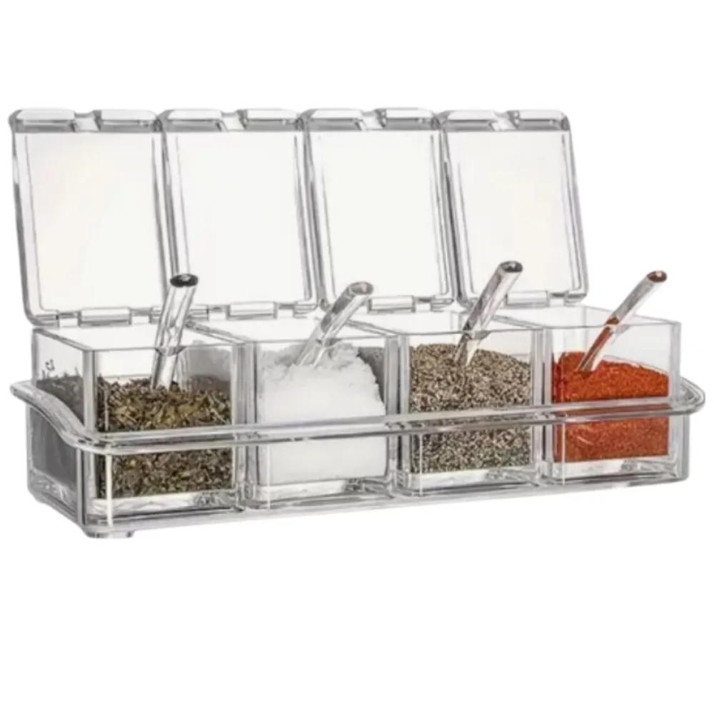 Kit 2 Organizador Acrílico 4 Potes Porta Temperos Gin Condimentos