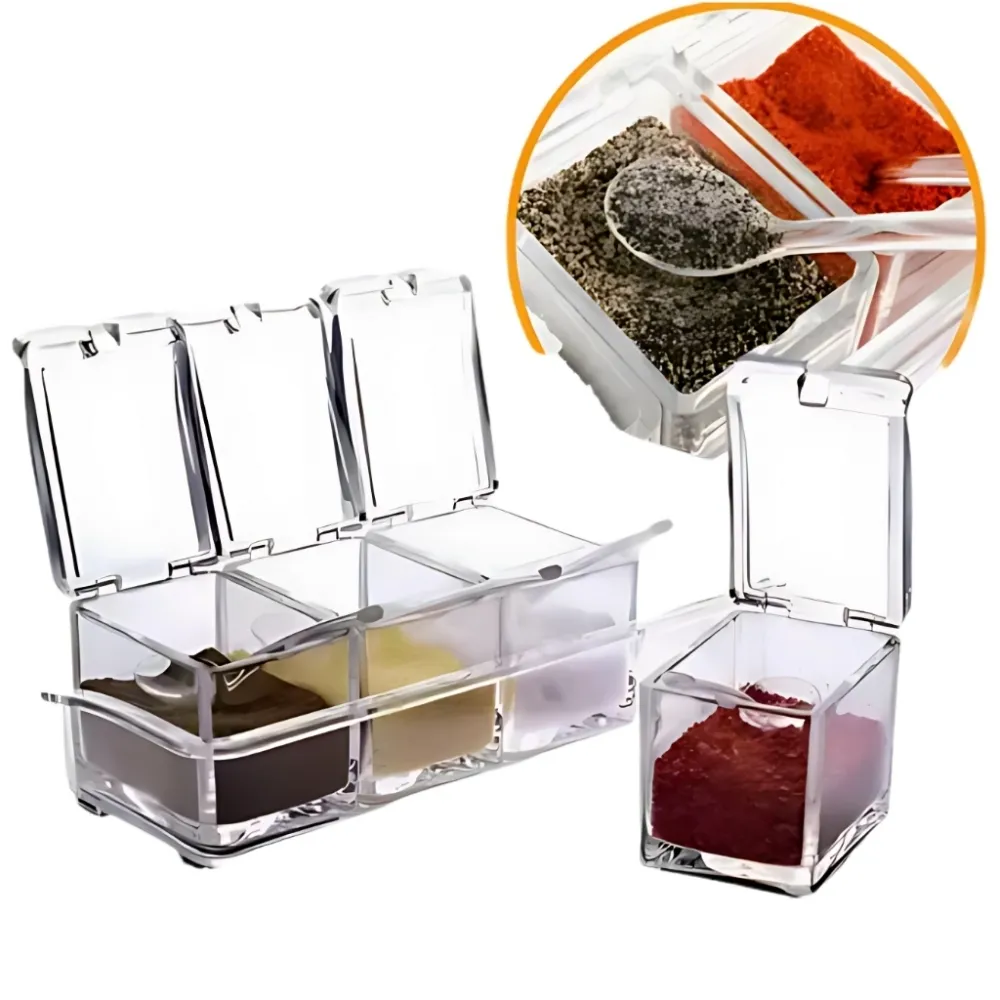 Recipientes transparentes e duráveis, feitos com material de alta qualidade, projetados para armazenar e organizar uma variedade de temperos e condimentos. Com tamanhos e formas ideais para atender às necessidades de organização da cozinha ou bar. A base auxilia a manter todos os potes juntos, mas estes podem ser removidos e organizados conforme a preferência. Cada pote acompanha uma colher de acrílico, proporcionando funcionalidade e estética ao ambiente.