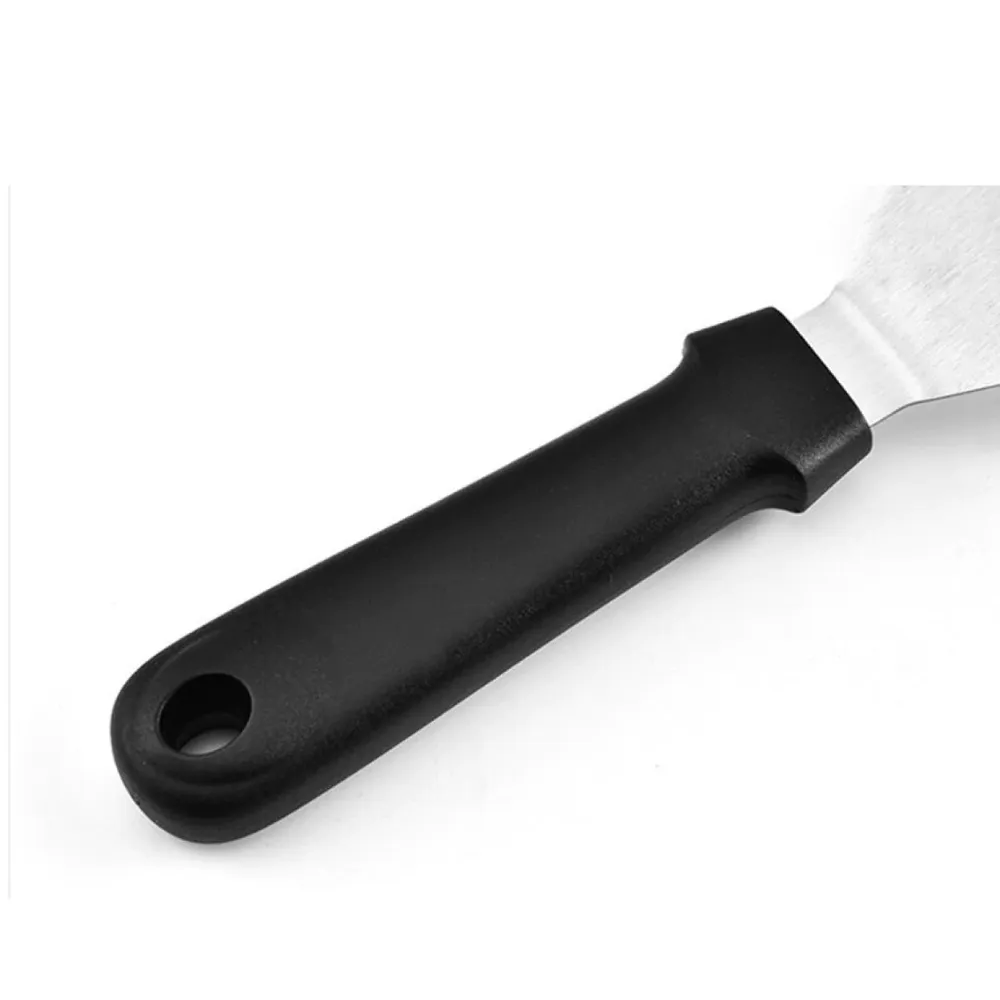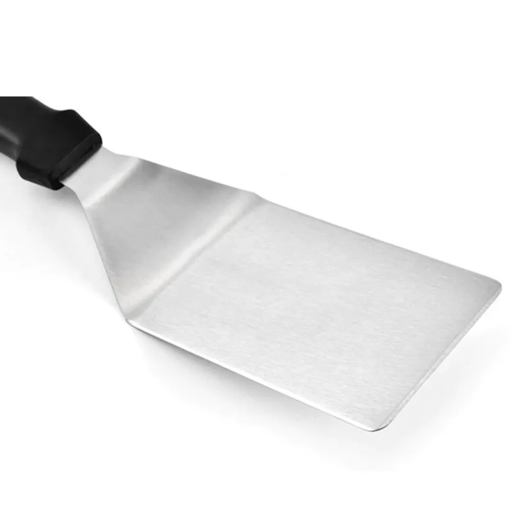 Colocar, virar e retirar seu hambúrguer da chapa ou churrasqueira, ficou muito mais fácil com este kit de espátulas com lâmina em aço inox e cabo de polipropileno preto 4 polegadas. Resistente e durável, ela é desenvolvida com lâmina em aço inox com maior espessura e uma estampagem do aço e cabo de polipropileno, características que juntas, garantem maior durabilidade, evitam deformações e a tornam mais resistentes, permitindo que seja levada à máquina de lavar louças, facilitando seu dia a dia!