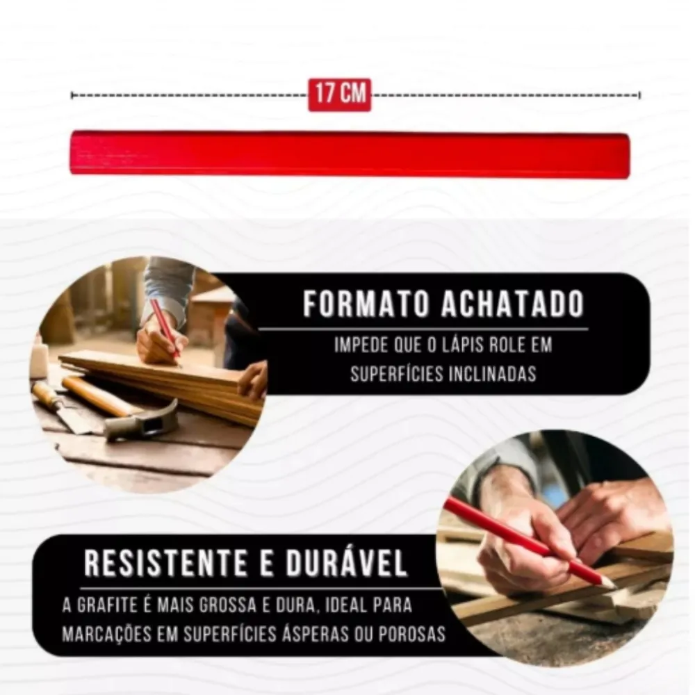 - O Lápis Grafite para Carpinteiro tem formato especial, indicado para marcações em madeira e trabalhos de marcenaria, carpintaria e artes.