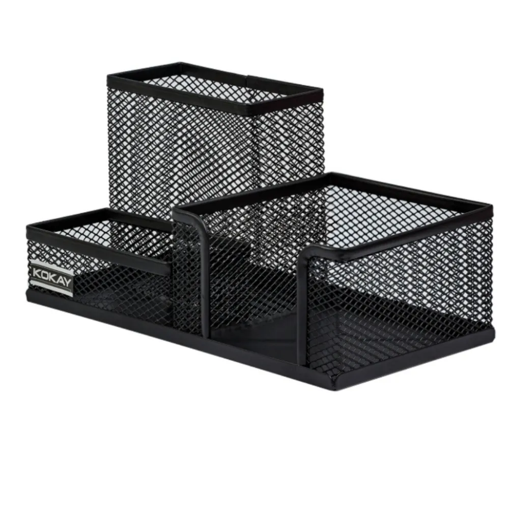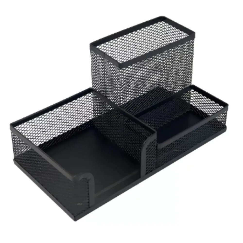 CONTÉM: 01 ORGANIZADOR DE MESA ARAMADO COM 3 DIVISÓRIAS PARA CANETAS, LÁPIS E PAPÉIS.