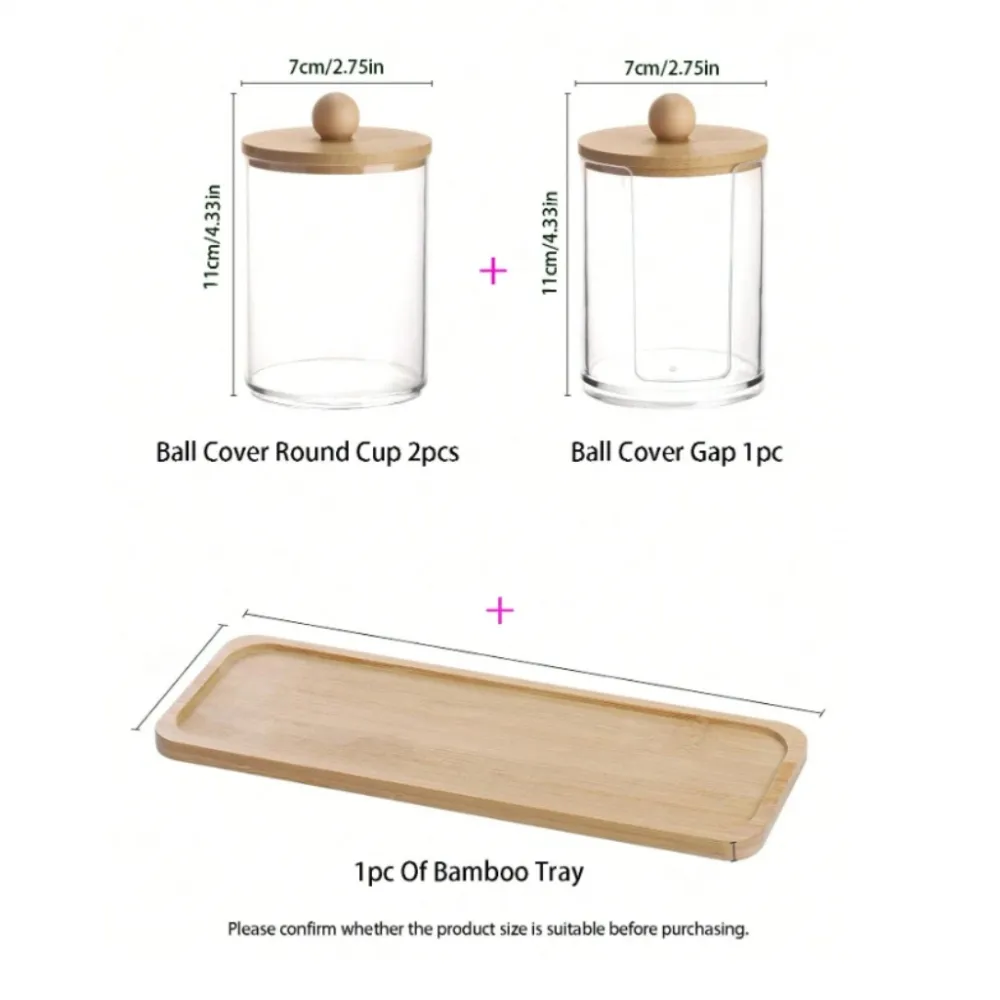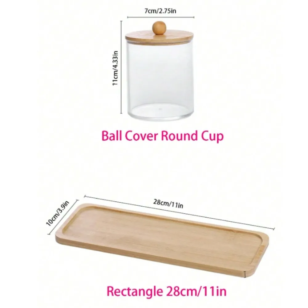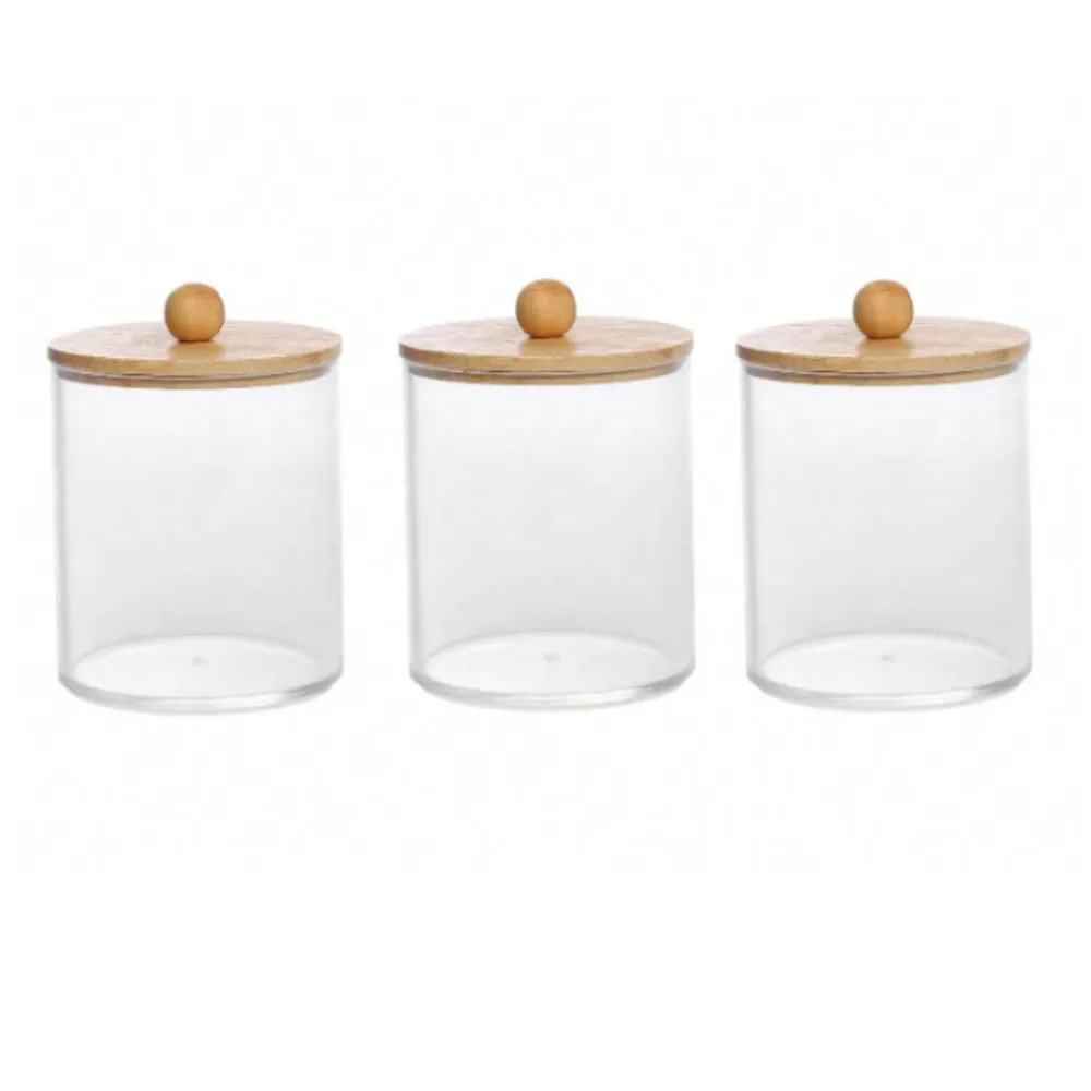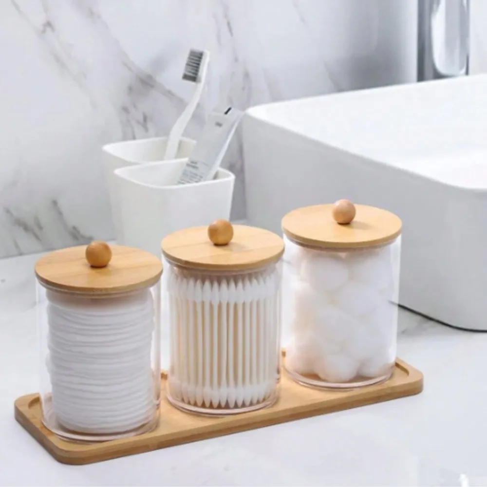 Porta Algodão Triplo Organizador Acrílico Tampa Bambu Cotonete Discos Maquiagem