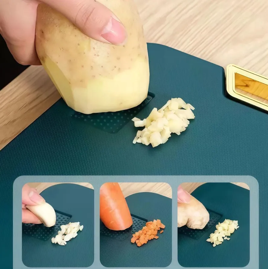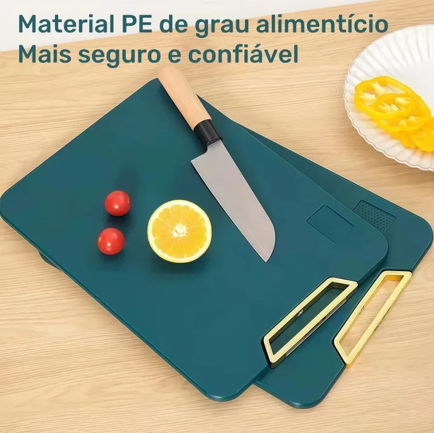Área Especial para Amolar Facas: Com uma zona para afiar alho, gengibre e outros, essa tábua adiciona praticidade e sabor às suas receitas.